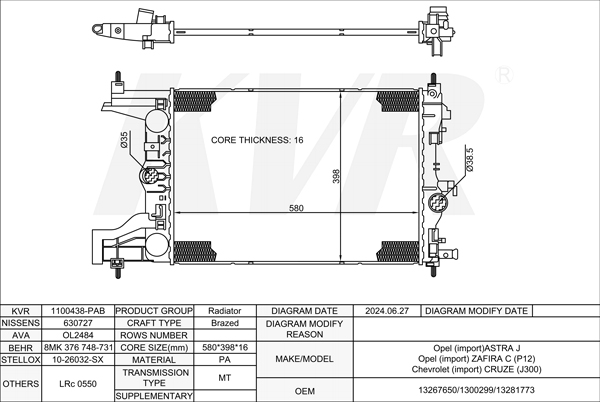 OPEL HATCHBACK,2009- B 16 XER RADIATOR