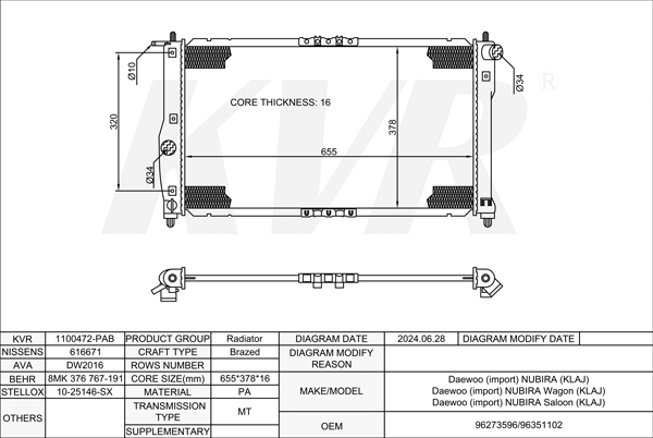 - APPLICATON:Daewoo NUBIRA (KLAJ)‘1997-