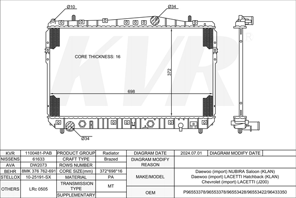 DAEWOO SALOON,2003- T18SED RADIATOR