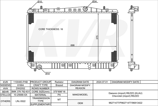- OEM:96271477/P96271477/96813422