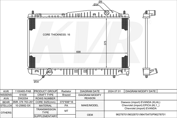 DAEWOO SALOON,2002- X 20 SED RADIATOR