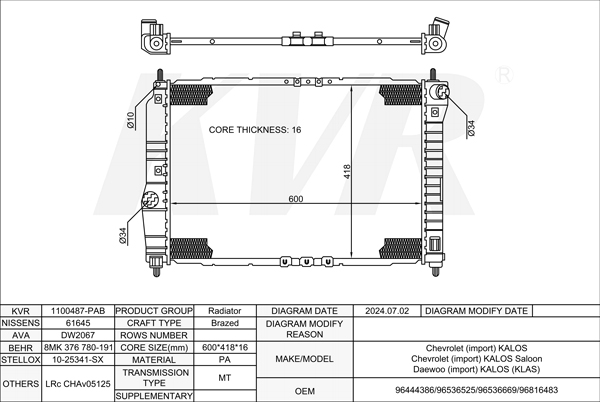 CHEVROLET SALOON,2005- F14D3 RADIATOR