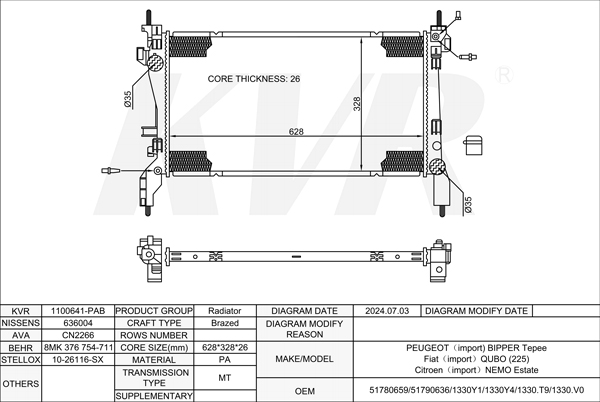- OEM:51780659/51790636/1330Y1/1330Y4/1330.T9/1330.V0
