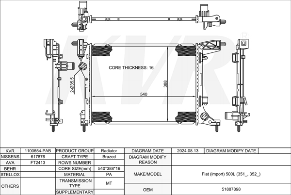 FIAT HATCHBACK,2012- 843 A1.000 RADIATOR
