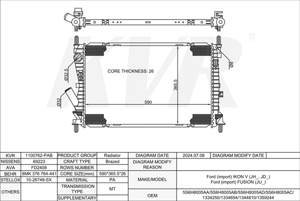 - APPLICATION:Ford IKON V (JH_, JD_)'2001-10/FUSION (JU_)'2002-1