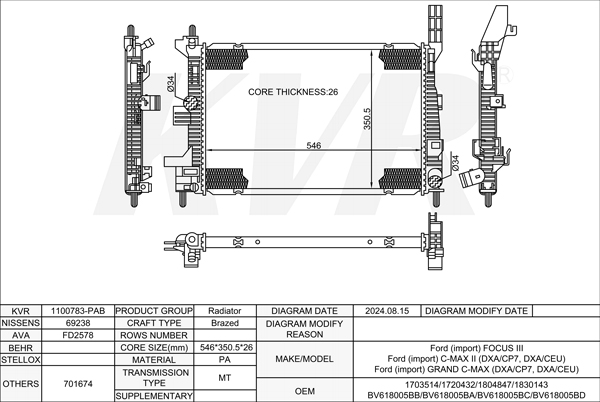 FORD HATCHBACK,2011- T3DB RADIATOR