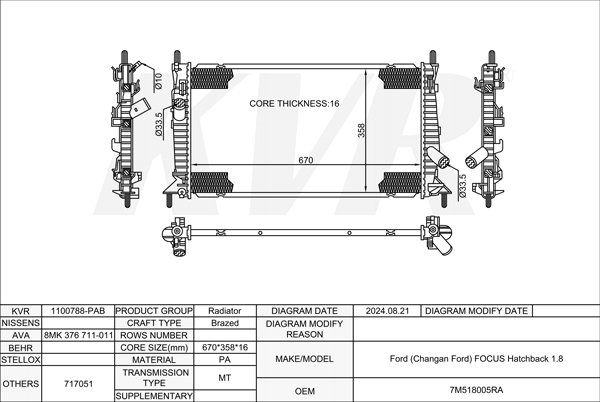 FORD HATCHBACK,2012-17 CAF483Q0 RADIATOR