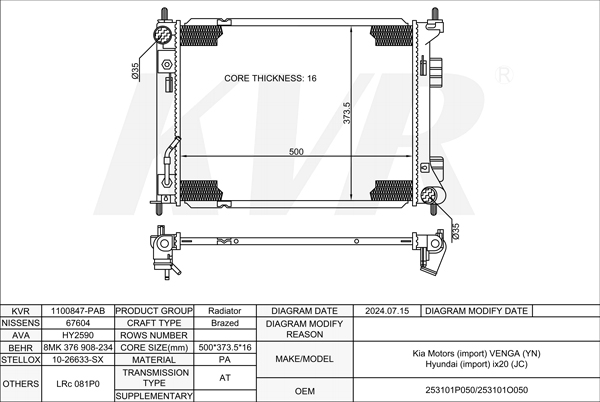 KIA HATCHBACK,2010- G4FC RADIATOR