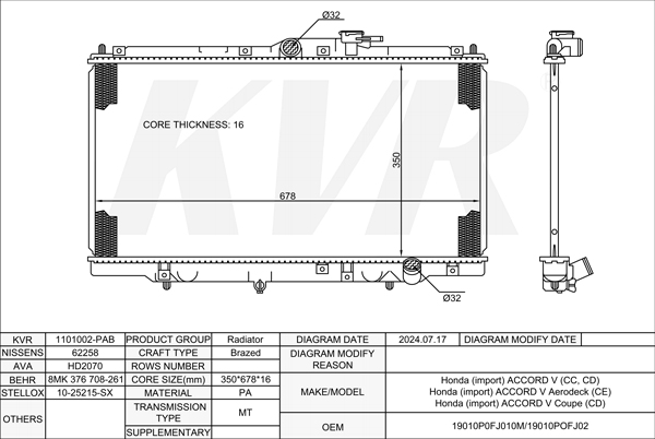 - APPLICATION:Honda ACCORD V (CC, CD)'1993-97