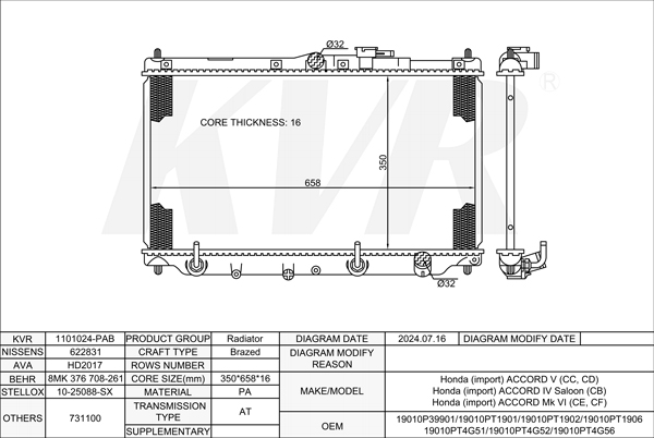 - APPLICATION:Honda ACCORD V (CC, CD)'1993-97