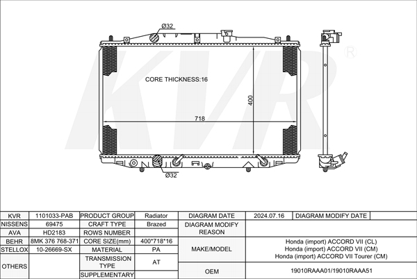 HONDA SALOON,2003- K24A8 RADIATOR