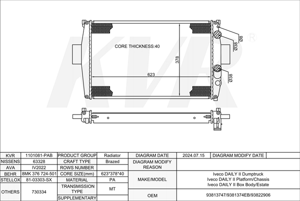 - Core size(mm)Brazed:623*378*40