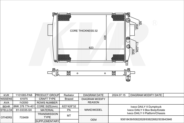 - Core size(mm)Brazed:623*428*32