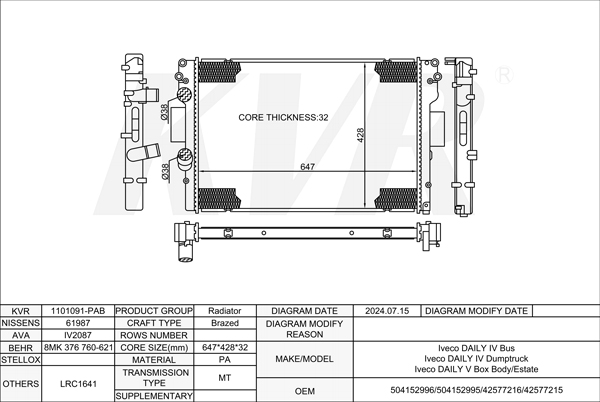 - APPLICATON:Iveco DAILY IV Bus'2006-11/DAILY IV Dumptruck'2006