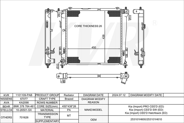 - APPLICATION:Kia PRO CEE'D (ED)'2008-13/CEE'D SW (ED)'2007-12