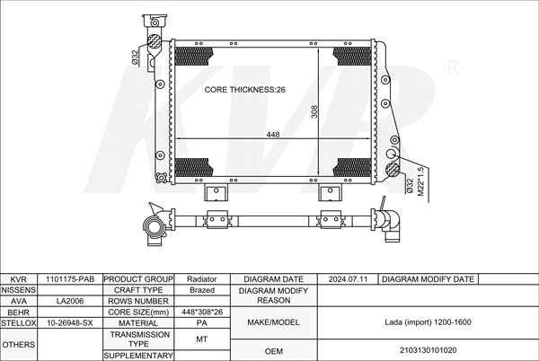 LADA SALOON,1970-93 BA3 2106 RADIATOR