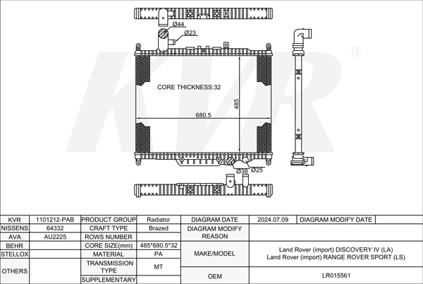 - Core size(mm)Brazed:485*680.5*32