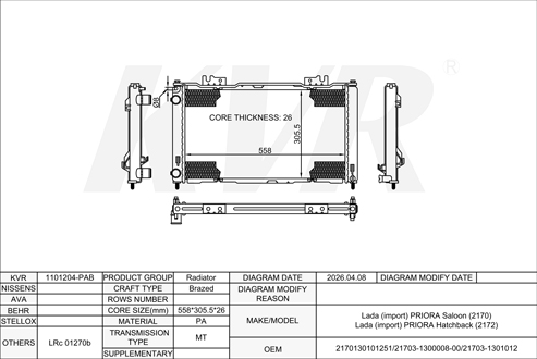 LADA HATCHBACK,2004- 21114 RADIATOR