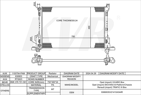 OPEL MPV,2010- B 14 NEL RADIATOR
