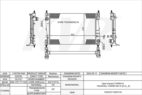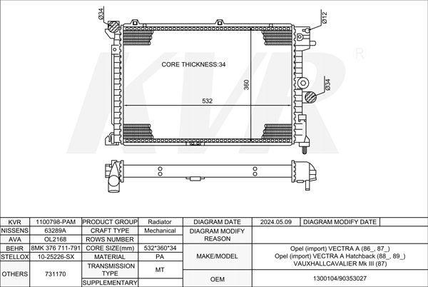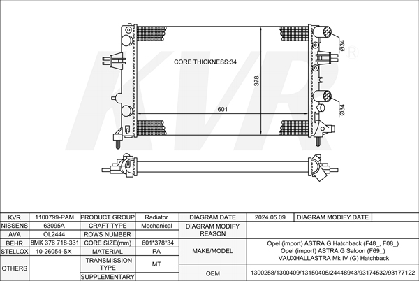 OPEL HATCHBACK,1988-95 X 17 DT (TC4EE1) RADIATOR