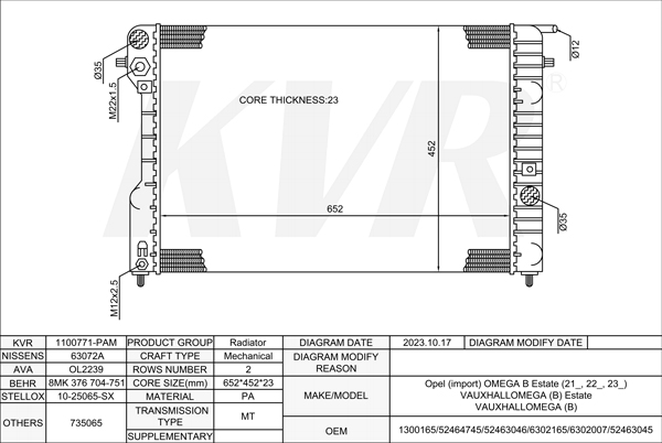 OPEL SALOON,1995-2002 X 17 DT (TC4EE1) RADIATOR