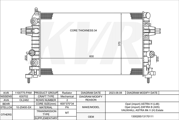 CITROEN BOX,2008- KFV (TU3A) RADIATOR