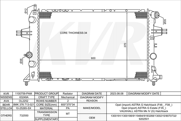 OPEL ESTATE,1994-2003 X 30 XE RADIATOR