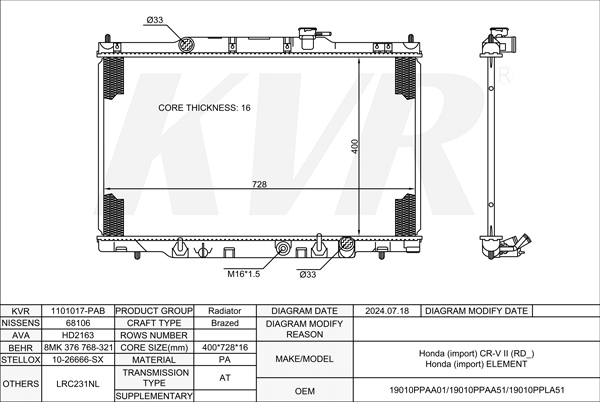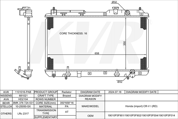 HONDA Closed Off-Road Vehicle,2001-06 K24A1 RADIATOR