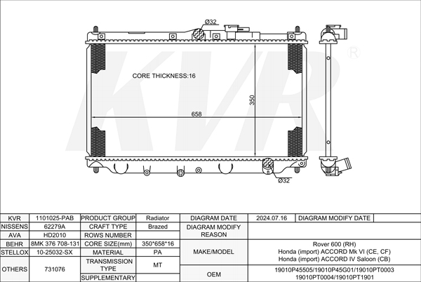 HONDA HATCHBACK,1991-95 B16A2 RADIATOR