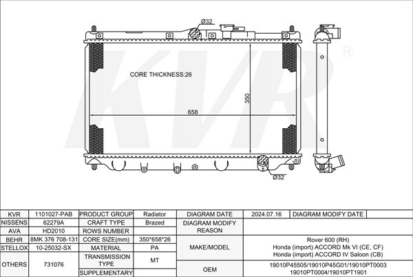 HONDA SALOON,1995-98 F22Z2 RADIATOR