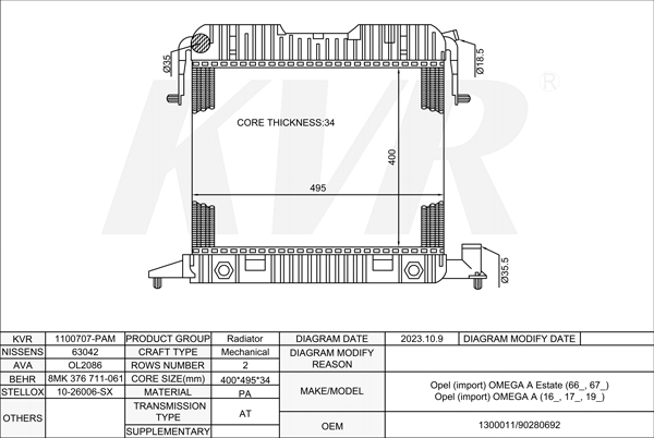OPEL ESTATE,1986-94 C 20 NE RADIATOR