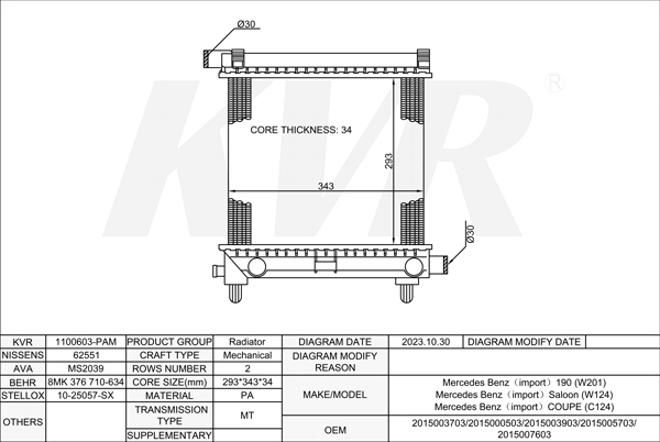 MERCEDES BENZ SALOON,1993-2000 M 111.945 RADIATOR