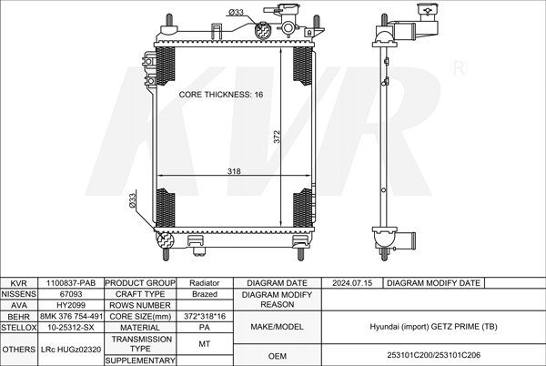 HYUNDAI HATCHBACK,2002- G4ED-G RADIATOR