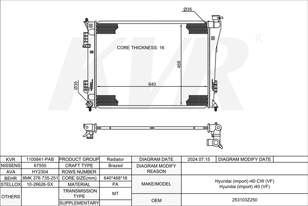 HYUNDAI ESTATE,2011- G4NC RADIATOR