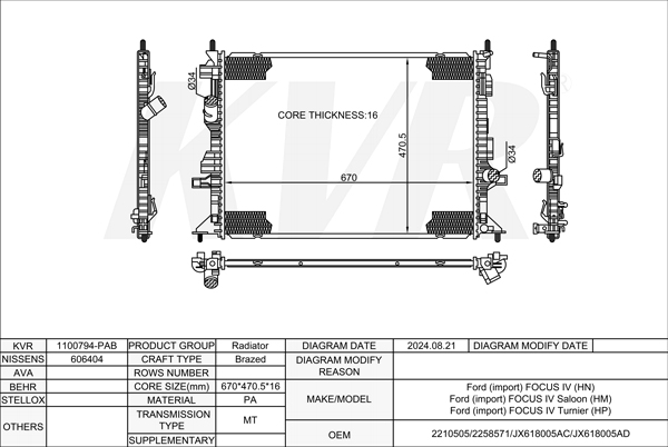 FORD HATCHBACK,2018- Z2DA RADIATOR