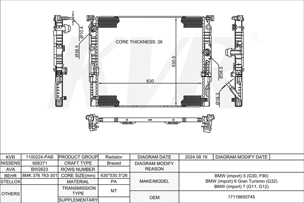 BMW SALOON,2016-20 B58 B30 A RADIATOR