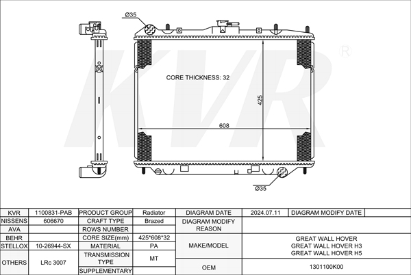 GREAT WALL SUV,2005-08 4G64 RADIATOR