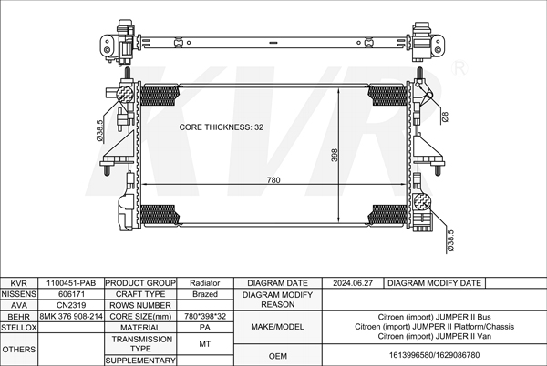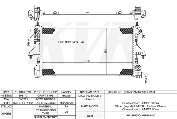 CITROEN BUS,2015-19 AHM (DW10FUE) RADIATOR