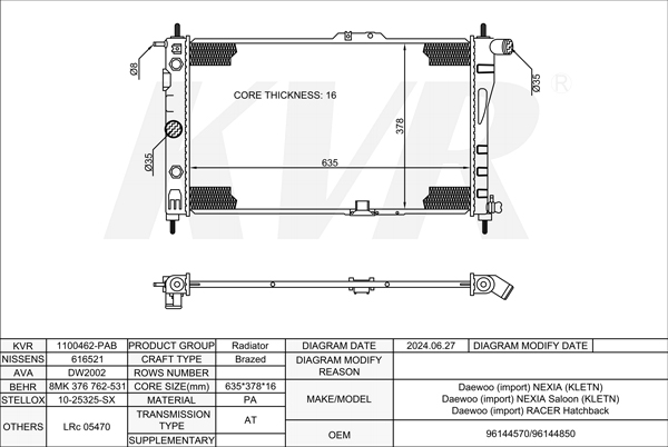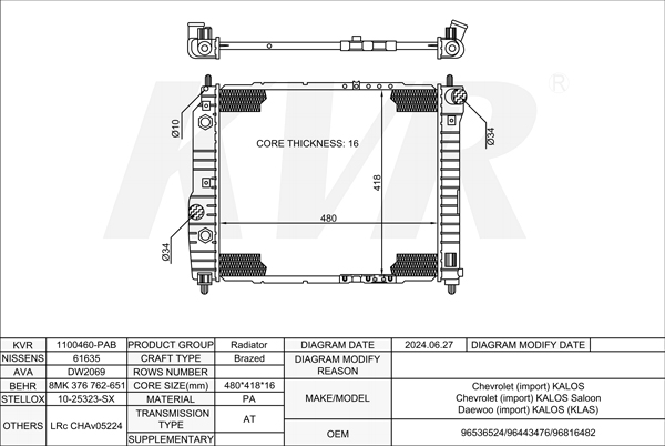 CHEVROLET SALOON,2005- F14S3 RADIATOR