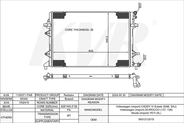 VOLKSWAGEN ESTATE,2015- CUUB RADIATOR