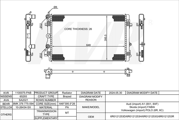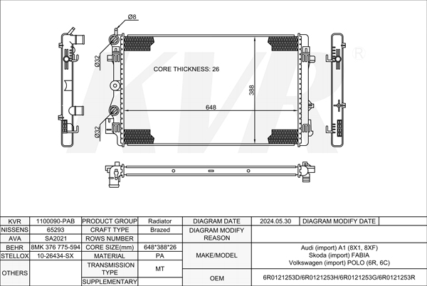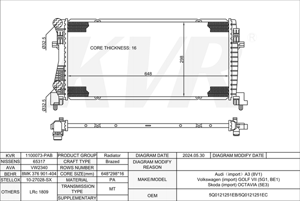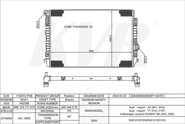 AUDI HATCHBACK,2012-17 CUNA RADIATOR