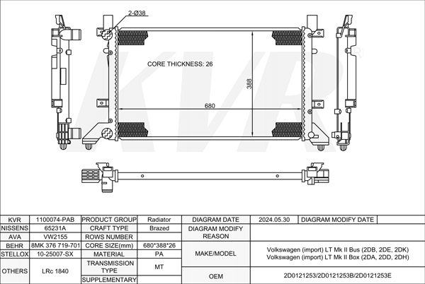 VOLKSWAGEN BUS,1996-2006 BCQ RADIATOR