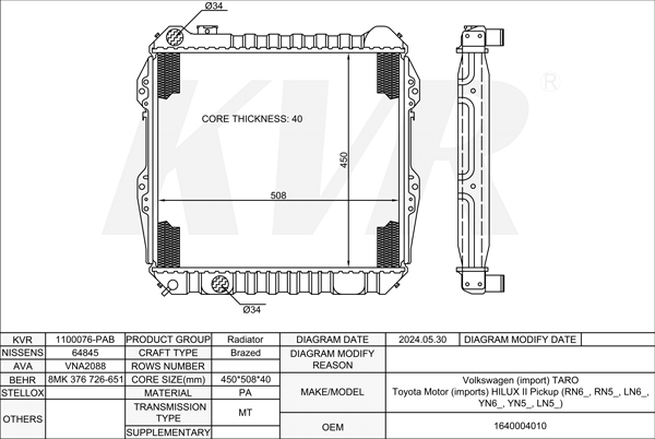 VOLKSWAGEN SUV,2016- CDVC RADIATOR