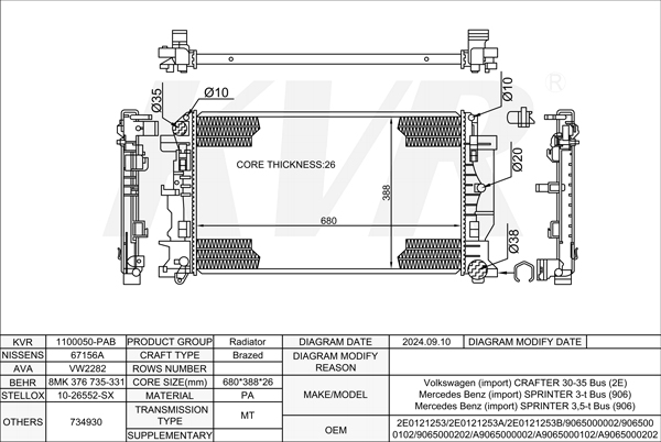 VOLKSWAGEN BUS,2006- CEBA RADIATOR