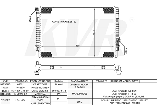 AUDI HATCHBACK,2012- CJXC RADIATOR
