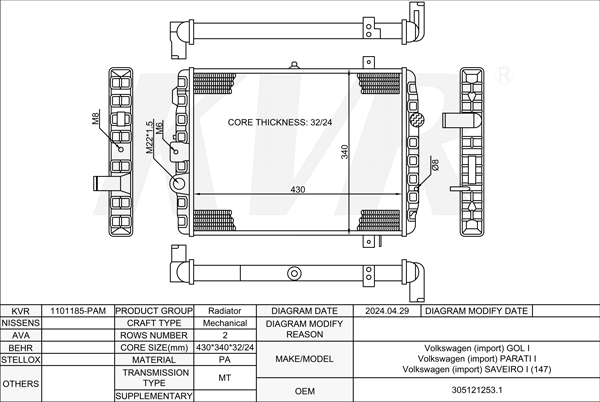VOLKSWAGEN MPV,1995-2010 AMY RADIATOR