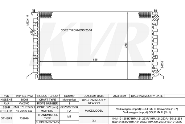VOLKSWAGEN HATCHBACK,1991-98 AKR RADIATOR