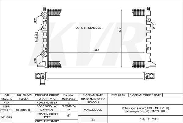 VOLKSWAGEN HATCHBACK,2003-09 CAXA RADIATOR
