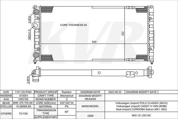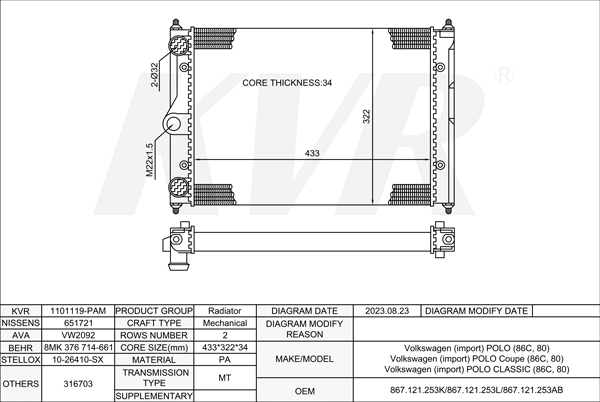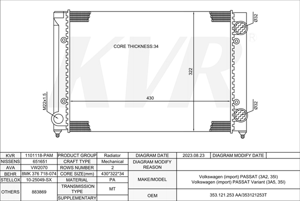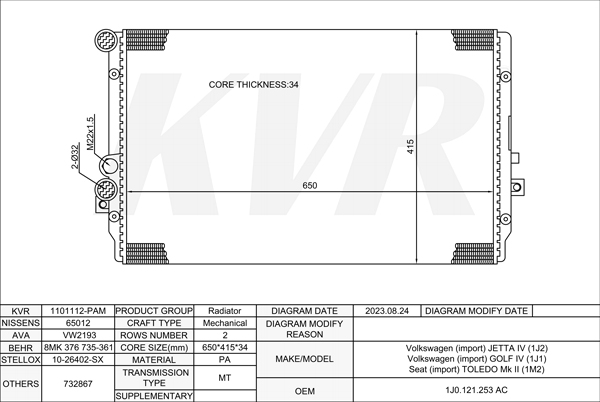 VOLKSWAGEN SALOON,1998-2005 ARL RADIATOR
