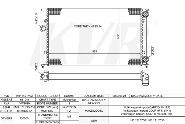 VOLKSWAGEN HATCHBACK,1981-94 1W RADIATOR